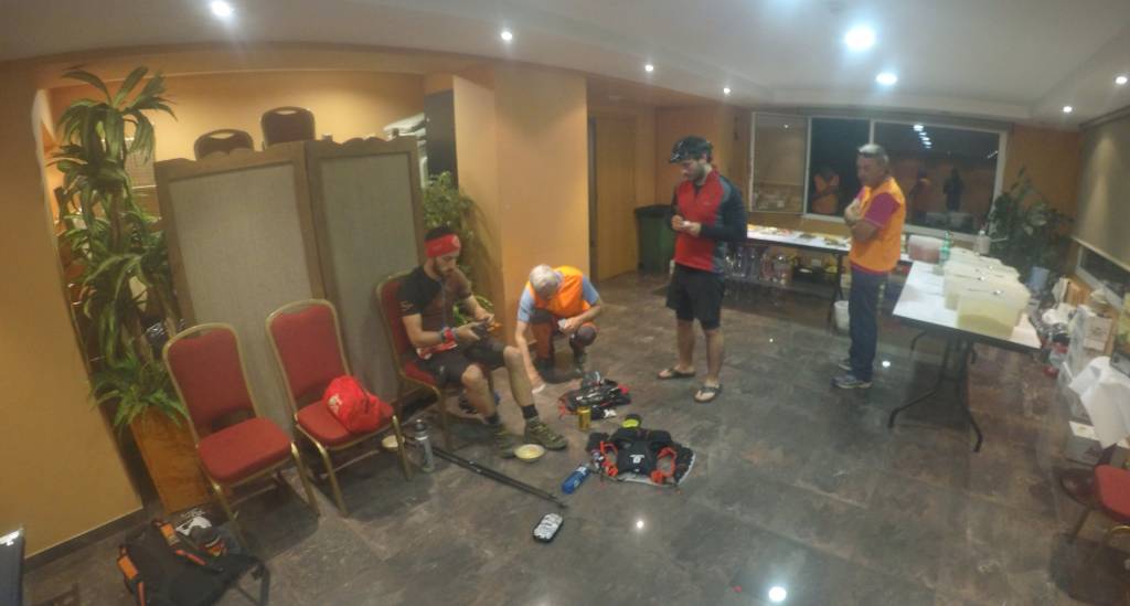 Llegue a la Margineda, allí estaban mis amigos, muy contentos, dándome ánimos. Lo primero que quise hacer fue airear los pies. En todo el trayecto hasta la Margineda había tenido los pies mojados, por lo que los tenia completamente cocidos ya que hacia muchísimo calor. No tenía claro si durarían 100 km más, y por si acaso me eche vaselina y me cambie de calcetines. Sin perder mucho tiempo, comí pasta, e puse la frontal eta me marche del polideportivo de Margineda en la 20. posición, con un tiempo de 15 horas y 36 minutos.