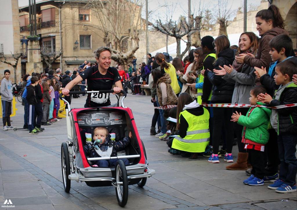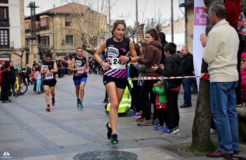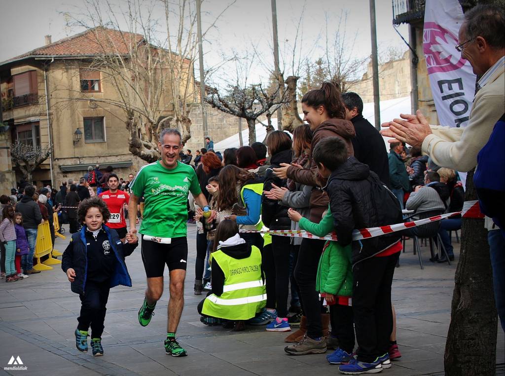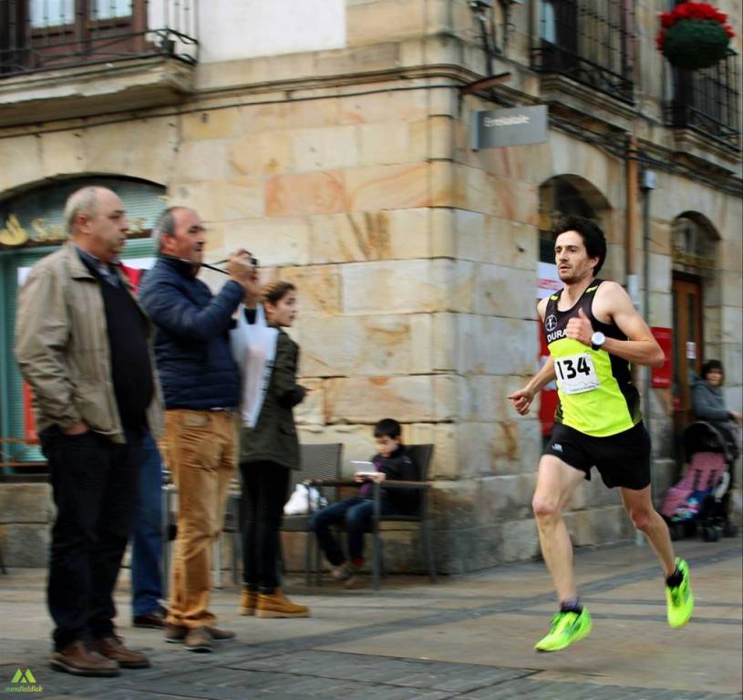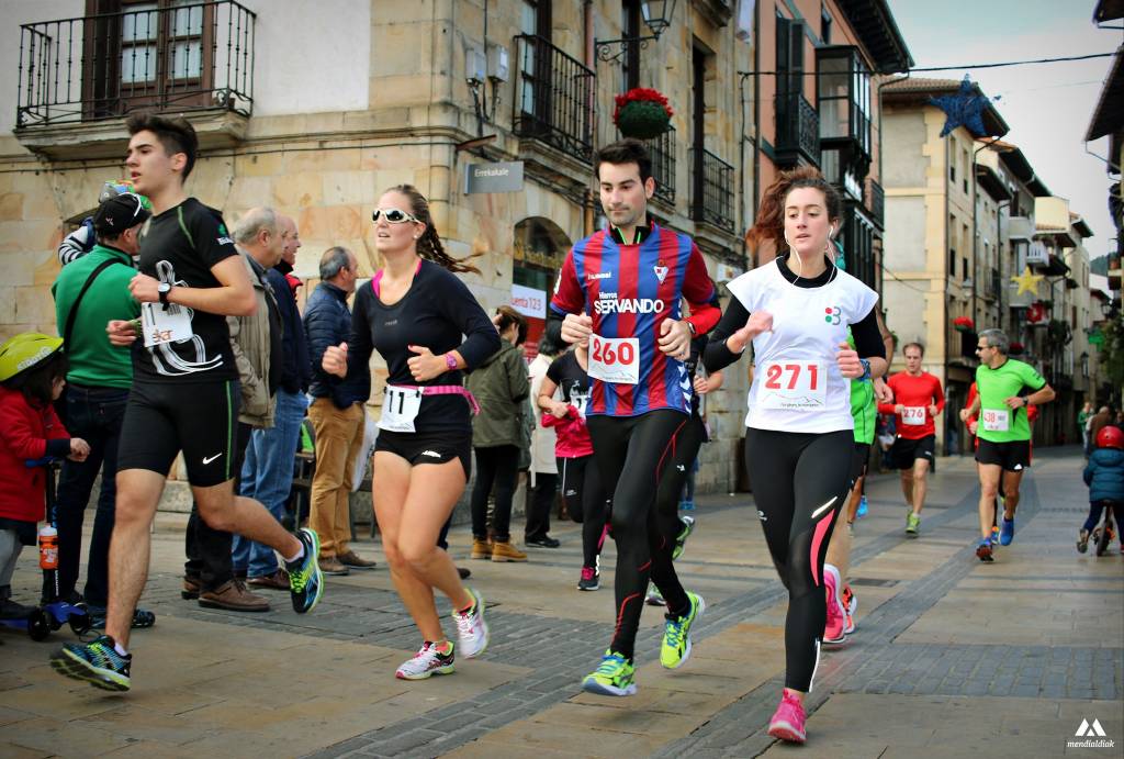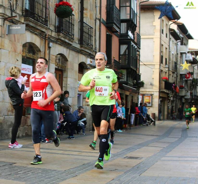 Un recorrido de 5.5. kilómetros, con un par de cuestas. Perfectas para sufrir tanto como para disfrutar. Dos ingredientes que a todos los corredores nos enganchan. Por lo tanto, aquí estoy yo también. Toda la semana con gripe, molestias, y con la motivación por los suelos… pero siendo francos, a los que amamos el deporte, la motivación nunca se nos va del todo. Puesto que siempre tenemos algo ahí dentro que nos anima a soñar con esas ganas de entrenar y/o de competir. Por lo tanto, dos horas antes de la prueba, he decidido dejar todos los problemas en casa, y poner rumbo a Elorrio. Una vez aquí, me dejo llevar. Me sumerjo en el buen ambiente que se respira en el pueblo vizcaíno y salgo a correr como si de un entreno más tratase. Al final, puedes hacerte mil dolores de cabeza, pensando si estás preparado, si sigues enfermo, si vas a dar todo lo esperas, si, si, si… y al final, solo es salir a correr, como un día más, pero con el apoyo y ánimos de todos los aficionados. Entonces será cuando darás lo mejor de ti mismo/a. Por otro lado, las cuestas del recorrido  crean una emoción especial por el hándicap que suponen, pero a la vez, son una prueba para las futuras carreras de montaña, y por lo tanto, me siento a gusto en ellas. Al fin y al cabo, los cambios de ritmo son los que hacen de una carrera algo emocionante o algo aburrido. Finalmente, tras tomar con calma la primera vuelta, llega la segunda y última, y en esta toca avivar el ritmo, forzar y disfrutar!!!