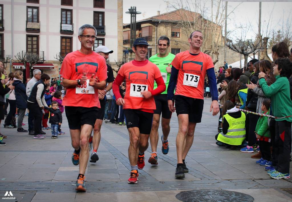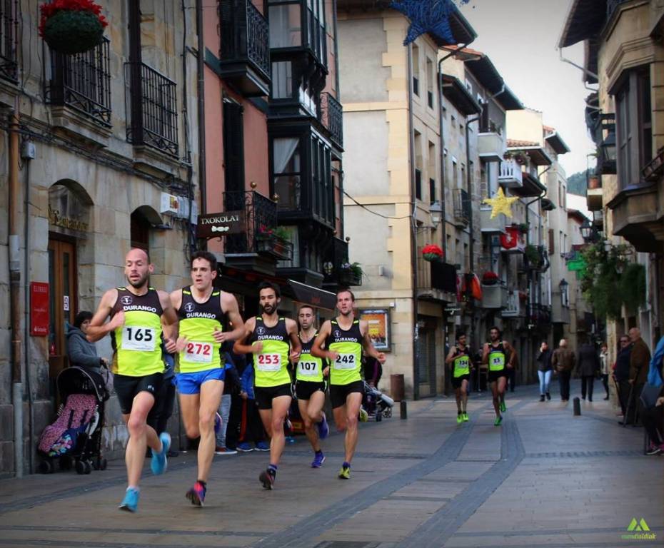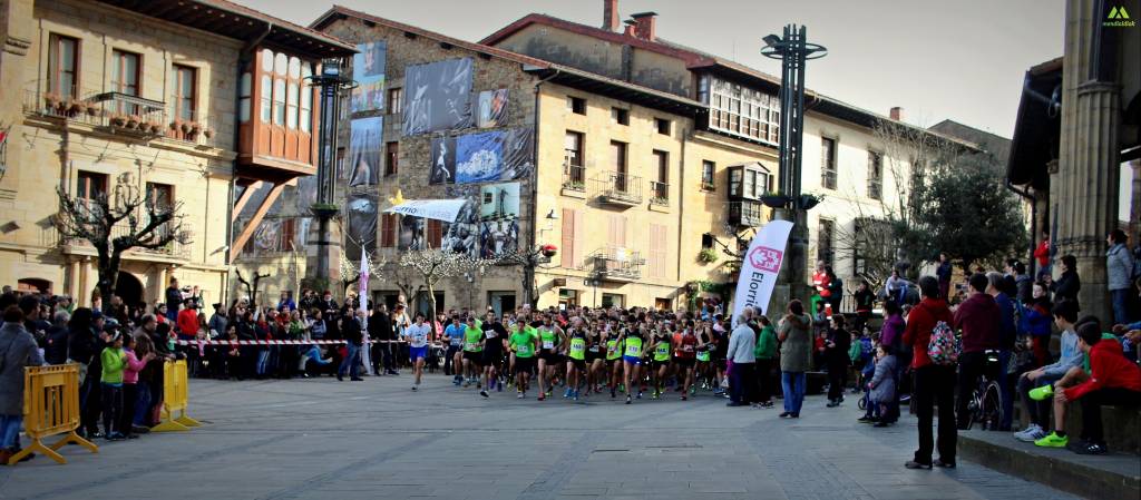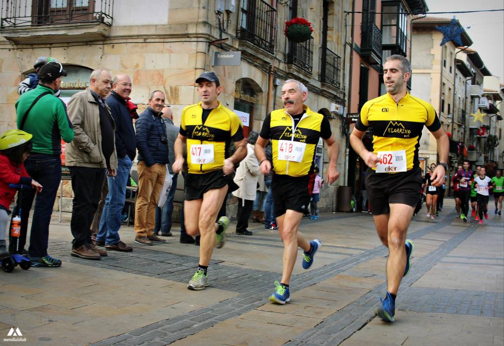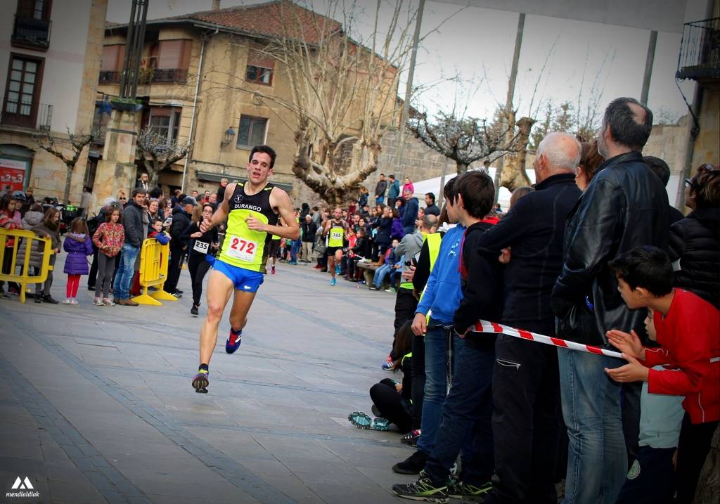 Una vuelta alrededor del pueblo y antes de que nos pillará el duro frio de Elorrio, la carrera vuelve al calor de la gente, cruzando una vez más la plaza. De ahí en adelante, comienza un recorrido que se repite durante dos vueltas. La expectación de la afición que se ha acercado aumenta a medida que los hombres de amarillo, ofrecen un gran espectáculo al coger las riendas de la tropa. Conocidos de la zona, y también en todo el País Vasco, puesto que estén donde estén, y se propongan los kilómetros que se propongan, nunca pasan desapercibidos. Siempre copan los primeros puestos. Van a toda mecha. A cual más rápido. Ellos son los integrantes del Durango Kirol Taldea: Oier Ariznabarreta, Aitor Mimenza, Julen Ozaeta, Ekaitz Kortazar, David Rua, Ander Okamika y Aitor Astorkia.
