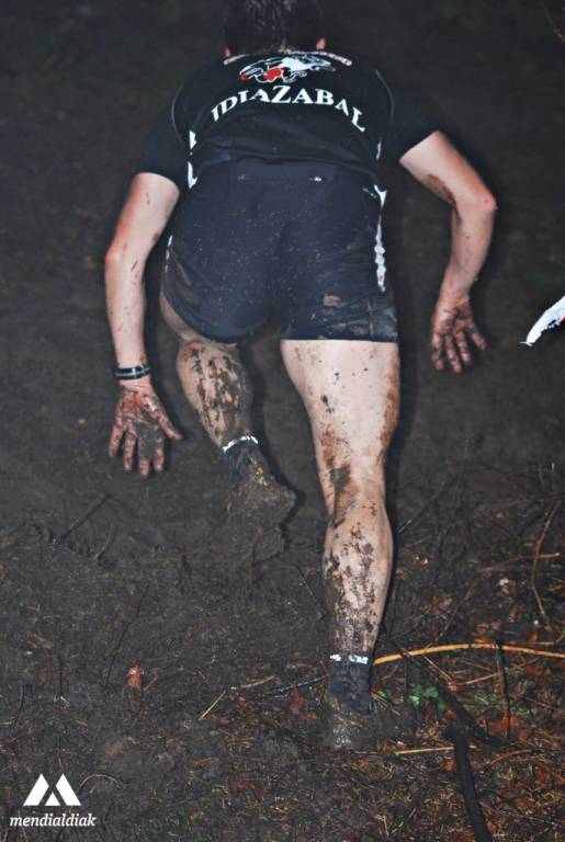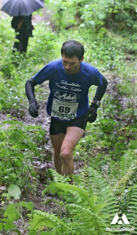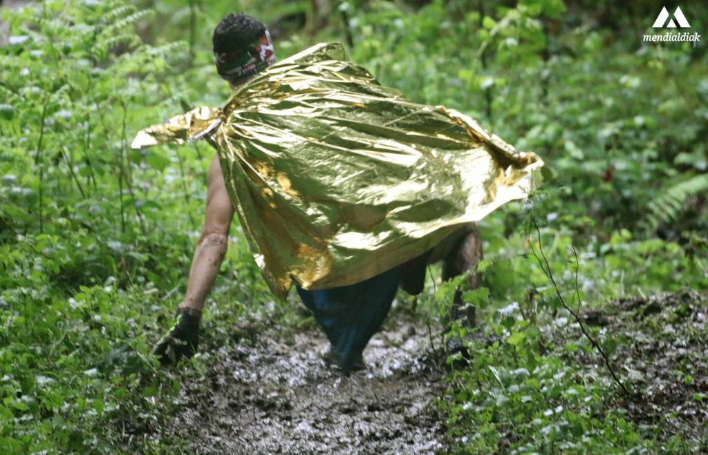 He de decir que es verdad que en Euskal Herria estamos acostumbrados a la lluvia, y que ha sido un plus en muchas de nuestras pruebas; por ejemplo, en el Vertical de Anboto. Pero, lo de Zegama fue increíble, puesto que ¡no dejo de llover ni un minuto! Además, como es habitual en esta prueba tan popular, los aficionados que se acercaron fueron bastantes, y por lo tanto, para cuando salieron los deportistas el terreno estaba bastante lleno de barro, y a la medida que iban saliendo todo se masifico. Hasta tal punto de que subir si subían, pero… ¡a cuatro patas!