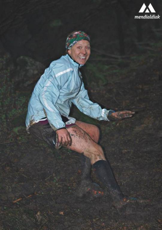 Beste proba askotan ere, euria egin izan du; esaterako, Anbotoko Bertikalean baina Zegamakoa itzela izan zen, ez baitzen segundo bakar bat ere gelditu! Gainera, bertara hurbildu ginenak askotxo izan ginenez, parte hartzaileak irten aurretik ere lokatz handia zegoen, eta kirolariak irteten zihoazen heinean, zer esanik ez… gorantz bai, baina lau hanketara!